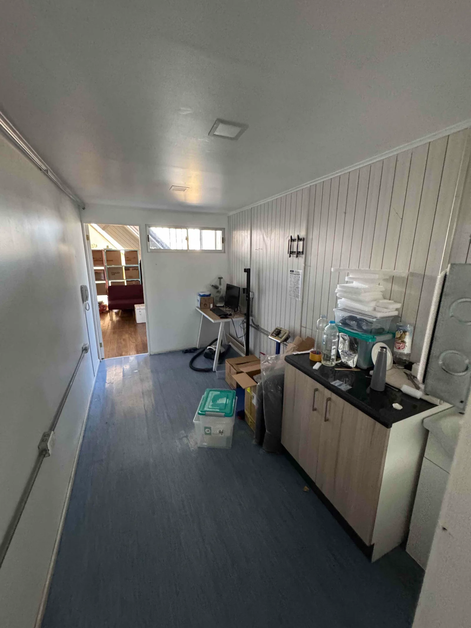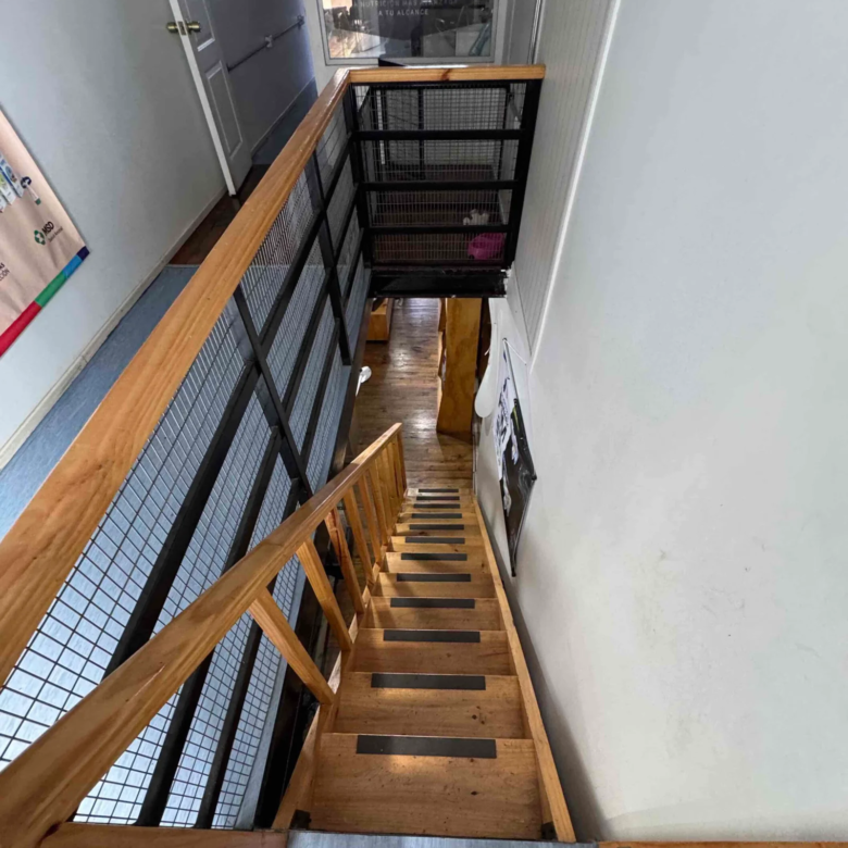 hall subida escalera, donde se puede ubicar una estación de trabajo,3 oficinas, cada una de 6m2 aprox. Una de las oficinas cuenta con aire acondicionado.